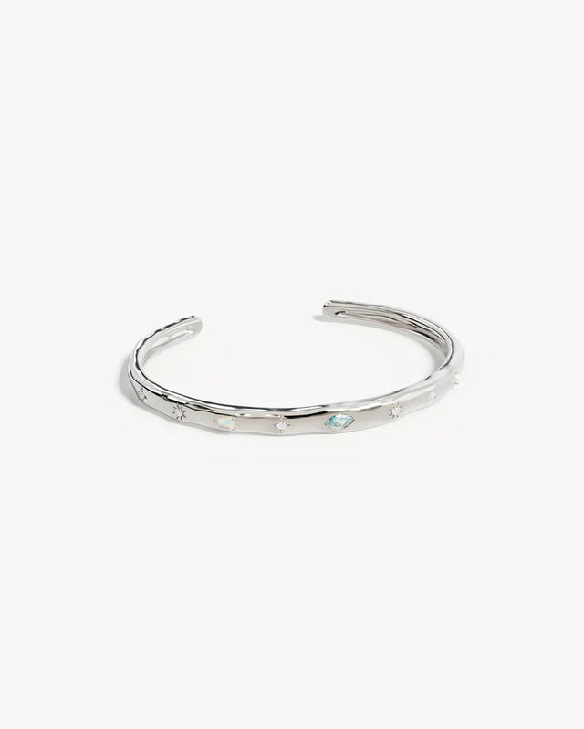Breathe new life into the new year with the Hope and Protection Cuff. Set with cubic zirconias and lab-grown opals, our luminous evil eye will assist you in shedding all that does not serve you, allowing you to move into the new year with purpose and peace. This keepsake is perfect for gifting, traditionally gifted to imbue the wearer with luck and protection.