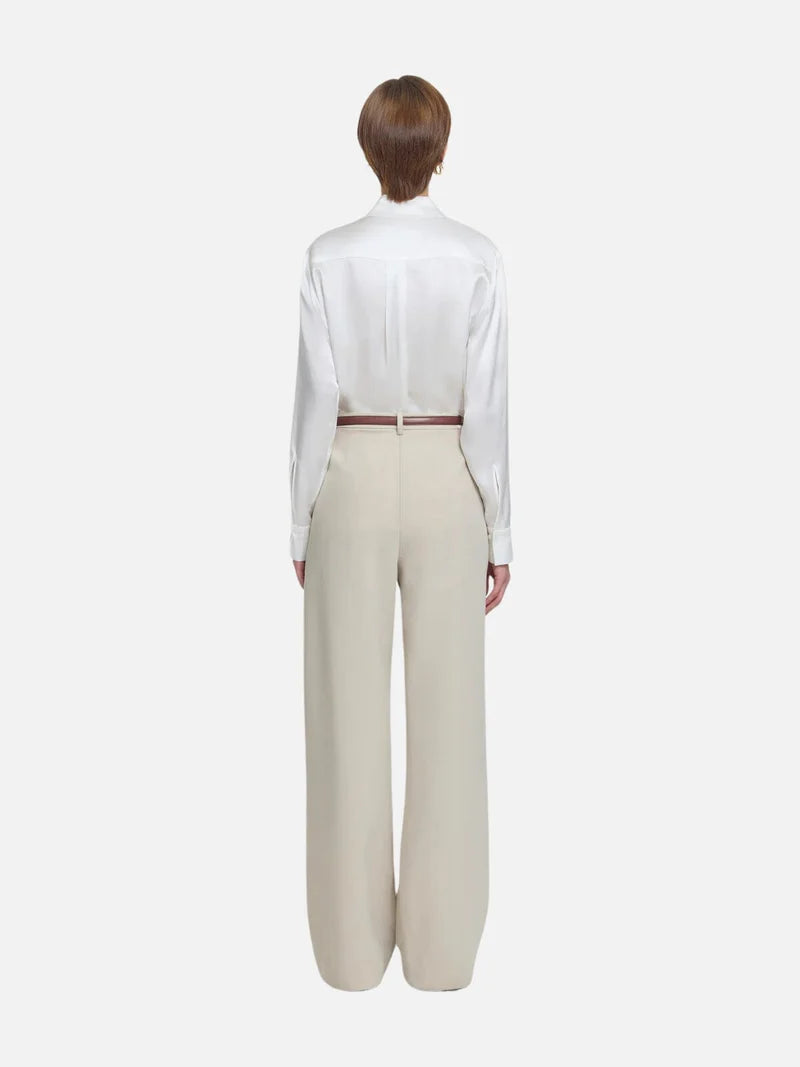 An elevated classic, the Idol Pant is crafted in a soft rayon blend fabrication in a subtle neutral hue. Falling to a full length and wide leg silhouette, this style features front tucks and functional angled side pockets, pairing perfectly with tailored blazers and shirting for effortless styling.
