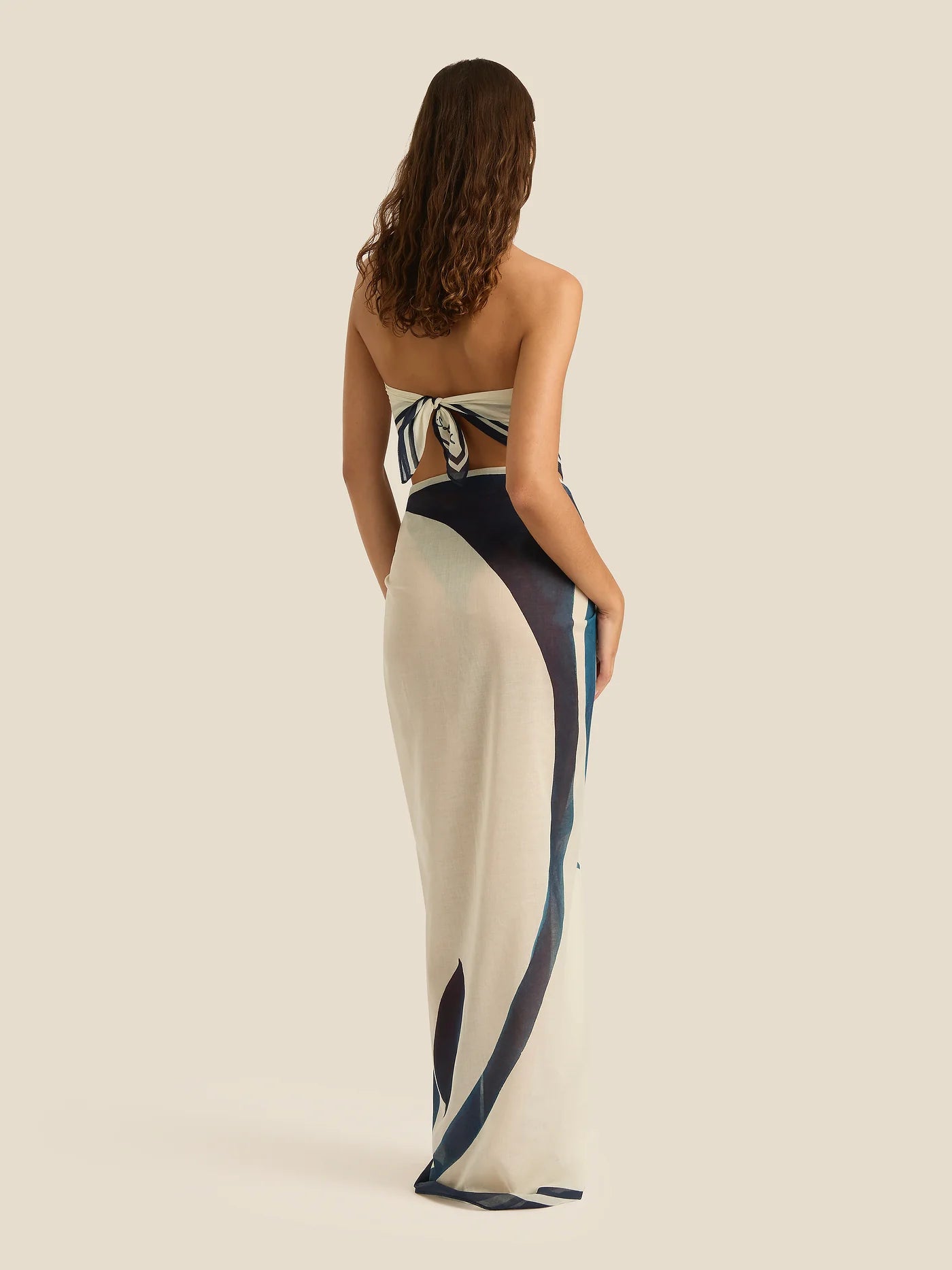 The ‘Petite’ Pareo is a long, narrow iteration of our classic Square Pareo. Cut from the same lightweight organic cotton, its rectangular shape is designed to wrap fully around the body — making it ideal for styling as a mini skirt. Equally versatile, it can be tied at the hip, styled as a strapless top, worn as a headscarf, and layered into looks far beyond the beach.