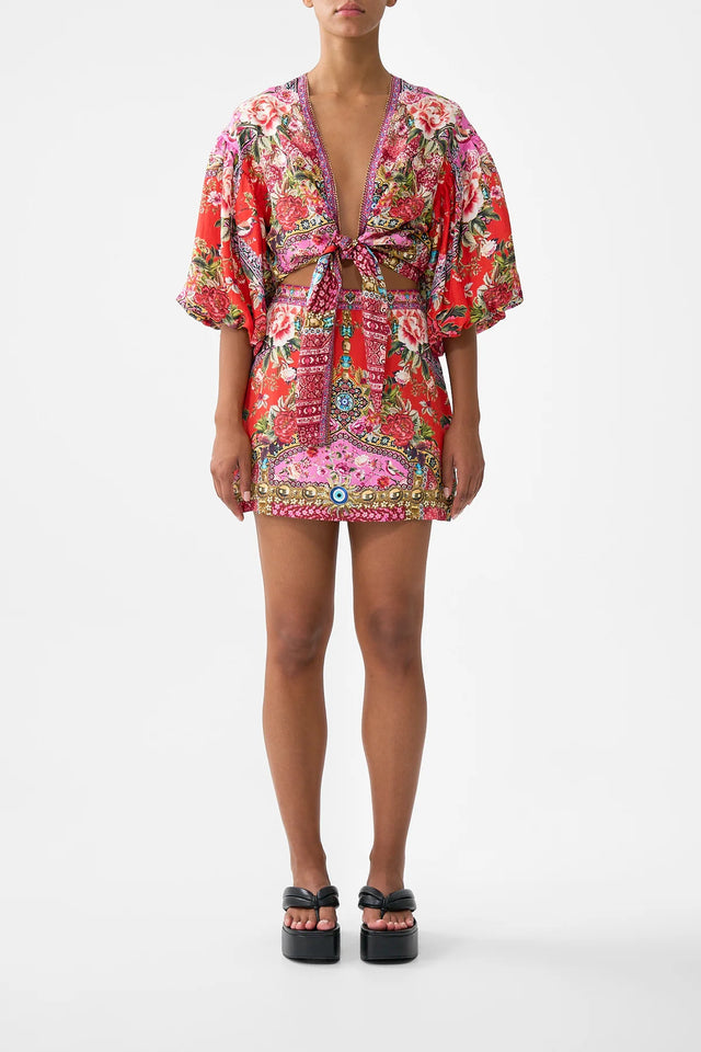The Heirloom Empire Mini Skirt is a handcrafted silk silhouette designed by our in house artisans. Reimagined in an exclusive limited edition print, this mini skirt is finished with a fixed waistband and invisible zip closure for seamless wear. Intricately placed crystal embellishments illuminate the design with touches of radiant detail.