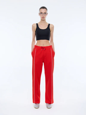 The Piper Stripe Pant elevates athleisure to a new level of sophistication. With its bold flame red hue and street inspired design, these elevated track pants offer a relaxed fit.