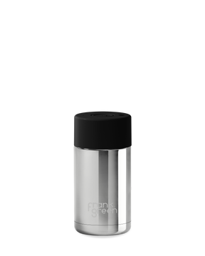 12oz/355ml Ceramic Reusable Cup with push Button Lid | Chrome Silver/Midnight