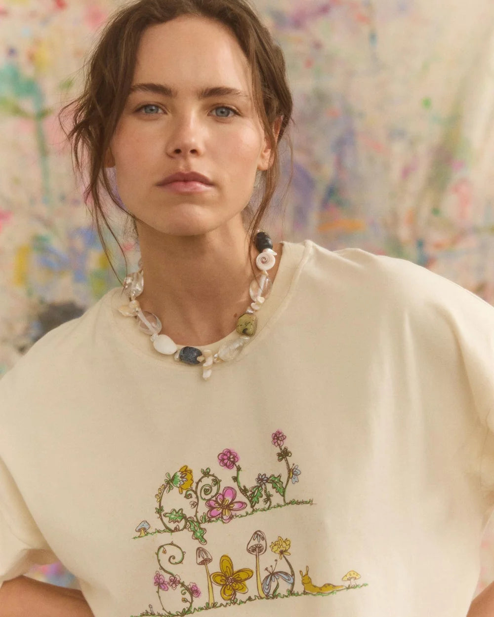 The creamy base tone makes the artwork pop while staying easy to style with denim, skirts, or thrown over swim.