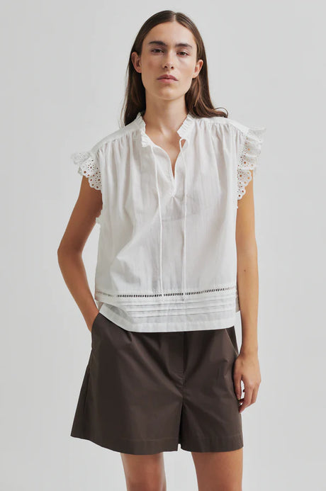White and Black Polkadot Cotton Shirt with Pussy Bow
