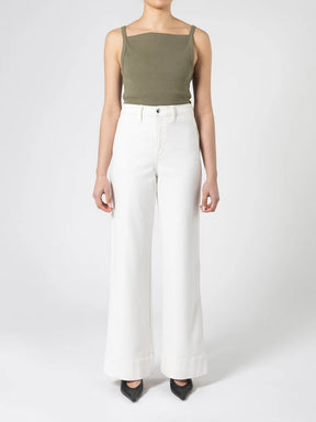 Nobody Denim's trouser-inspired wide leg jean. The Michelle Jean sits high on the true waist, is fitted through the hip and widens out to fall over your shoe. Featuring welt pockets and back waist darts. Crafted from premium comfort stretch denim.