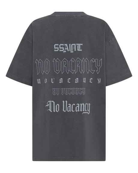 Grey and Black Graphic Cotton T-Shirt with Lace Details