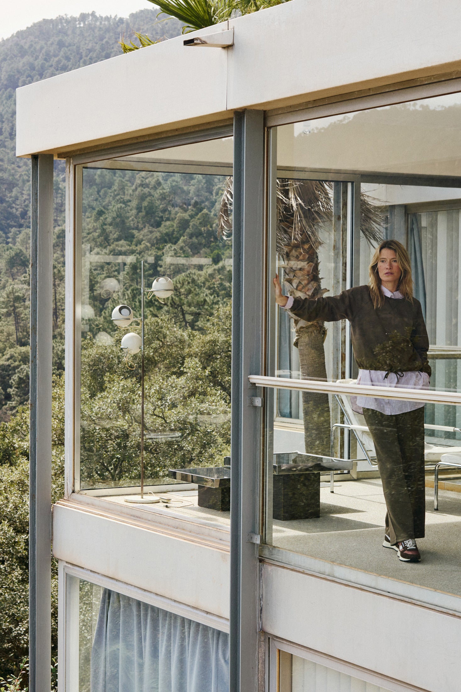 A sweatshirt with a nice drape thanks to its viscose composition. It has a raglan sleeves cut and adjustable waist ties. It's slightly short and square.