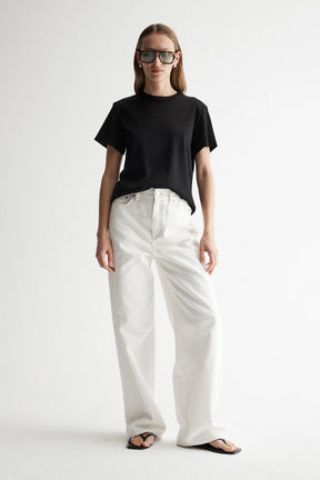 Part of our premium basics range, the Zoe Tee is a true wardrobe staple. Crafted from our soft organic cotton this t-shirt is a sleek and comfortable option for easy casual outfitting in any season. With a classic short sleeve design, crew neckline, and a relaxed boxy fit, the Zoe Tee can be styled with all skirts, jeans and suiting options from work to weekend.
