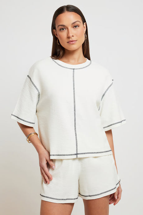 Lounge Stripe Linen Long Shirt | Moss Stripe