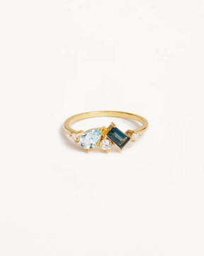 The Bound By Love Ring is an ode to the unspoken connection between two souls - bound by love. This ring is designed to be your ‘something blue’, featuring a natural baguette and pear-cut blue topaz, intimately embraced in a beautiful cluster design. The blue topaz symbolises love and illustrates a sense of calm and tranquillity.