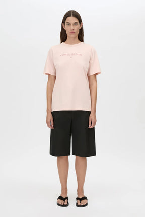 CAMILLA AND MARC Ghiberti pink relaxed short-sleeve t-shirt with ribbed crew neckline and light plastisol logo print. Twin needle hem.