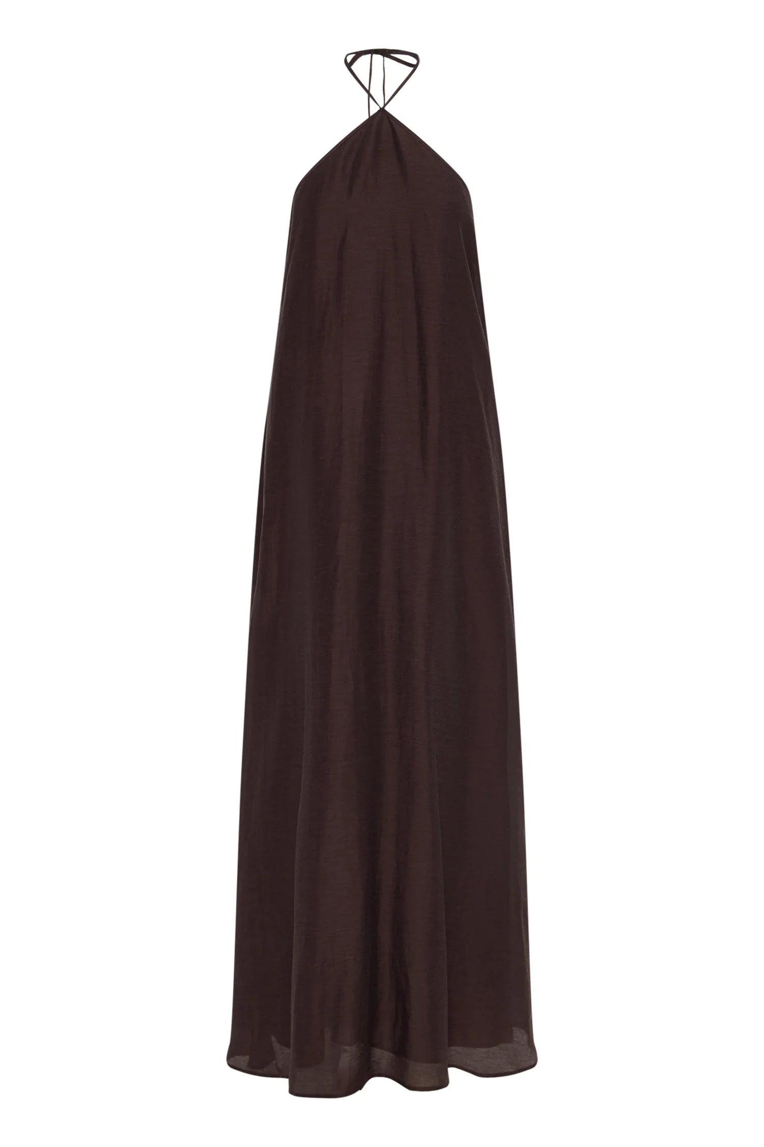 The Margot Maxi Dress is made from a light weight lyocell blend fabric which is slightly sheer and has a smooth hand feel. The silhouette is relaxed with a high triangular halter neckline and full ankle length skirt. Features include a high halter neck and low elasticated back. This dress is fully lined.