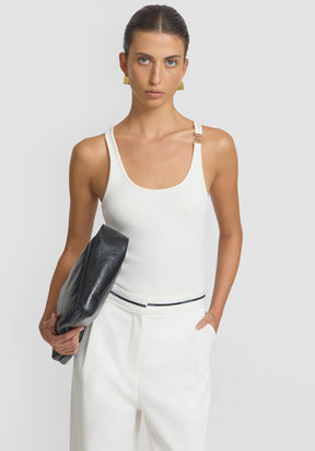 Bring new life to your everyday essentials with the Victor Tank, an elevated take on the classic tank top. Crafted from our signature 2x2 organic cotton rib in ivory, this fitted silhouette showcases a flattering scoop neckline and sleek V&W hardware on the strap. The perfect starting point for any outfit, it exudes effortless luxury with every wear.